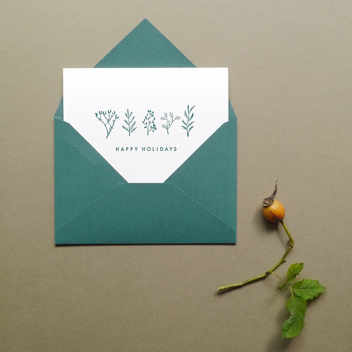 レタープレスで印刷されたグリーティングカード。